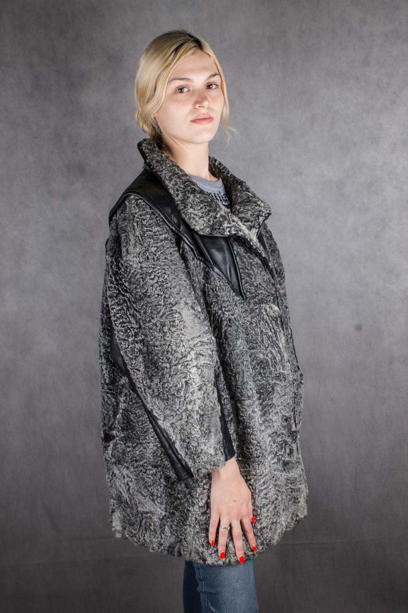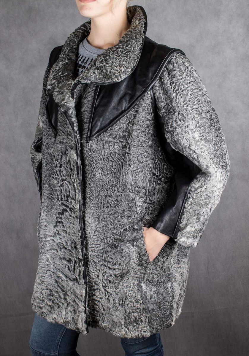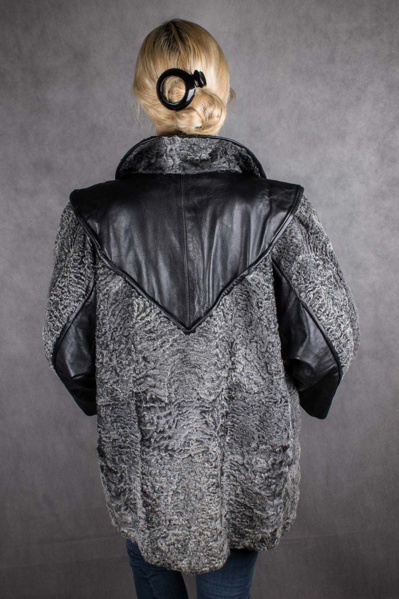 Шуба женская из каракуля с кожаными вставками, 50 размер в интернет-магазине todalamoda